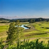The sixteenth and seventeenth (pictured) holes are routed up and along a wooded hillside