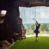 Players tee off from a cavern and through a waterfall at the new Cliffhangers short course at Big Cedar Lodge