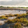 A newly chunked bunker at Streamsong Black. Chunks of cogon and needle grasses were taken from the natural area in the foreground, and far left, exposing the natural sand, and placed on the created ridge outlining the sixteenth hole.