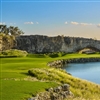 The green on the par-three sixteenth at Apes Hill sits on the edge of a lake