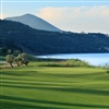 The two courses are quite different. The Dunes is longer, and more obviously a resort course, given that it works its way around two large hotels. Although undulating, it is less hilly than the really rather severe terrain crossed by the Bay course. The Ionian Sea is more closely involved with the Bay than the Dunes, where the second green is close to the water, but where the hotel complexes occupy most of the prime seafront real estate.