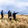 Donald Trump (right) and the project team survey the site for the new MacLeod course at Trump International Golf Links near Balmedie, Scotland