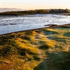 Of the final three holes that return to the other side of the inlet, the short par-three seventeenth has a particularly dramatic green complex with a small target rising above the surrounding sandscape.