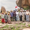 Peter Harradine, pictured with the construction team at his project in Hyderabad, India, has designed courses across Europe, Africa and Asia in a career that now spans seven decades