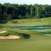 The tee on the thirteenth hole has been dropped and moved to the right. Trees have been removed to the left of the fairway, but the most significant change is on the green. Here, the shape has been altered to make it narrow in width, but long from back to front. The green has also been moved to ground level, rather the elevated position it previously had.